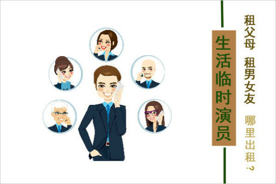 生活临时演员:现实舞台上的多面人生演绎在现代社会快节奏与多元化需求的交织下,一个新兴职业群体正悄然崛起——生活临时演员。他们没有镁光灯下的璀璨光环,却在现实生活的各个角落,以精湛演技为人们解决棘手难题、填补情感缺口。临时演员服务衍生出一系列颇具辨识度的推广词:“租父母”“租亲戚”“代打电话”“找人扮演父母”等,这些简洁直白的表述,勾勒出服务的核心内容,也让“生活临时演员”这一概念逐渐走入大众视野。“租父母”服务,精准击中当代年轻人在社交、婚恋、职场等场景下的特殊需求。面对催婚压力,年轻人大可租一