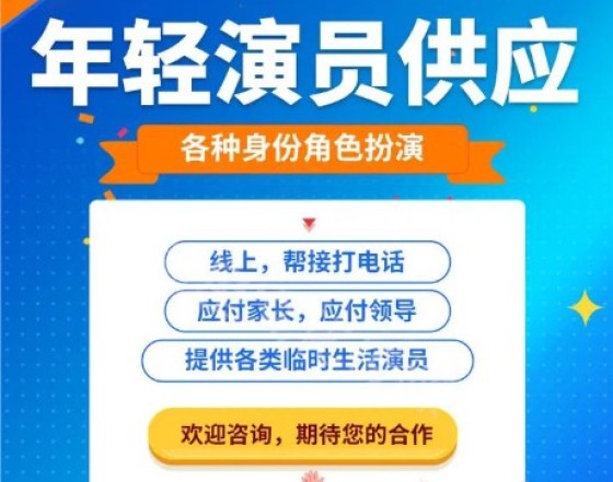 生活难题一键解决,临时生活演员来救场!生活中,你是否常常陷入这些困境:春节回家,父母的催婚攻势让你招架不住;孩子的家长会,你却因工作冲突无法出席;公司聚会要求携伴,你却形单影只……别担心,我们的临时生活演员租赁服务,就是你的救星!- 极速响应,随时待命:无论你是提前计划,还是临时起意,只需一个电话,我们经验丰富的团队就能迅速为你匹配最合适的演员,最快2小时内就能让演员就位,解决你的燃眉之急。- 专业演技,以假乱真:我们的演员均经过严格筛选和专业培训,有的甚至是专业话剧演员出身 ,他们能精准把握各种角色