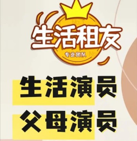 生活如戏,有时我们会陷入各种社交困境,渴望有人能帮我们化解尴尬、填补空缺。现在,无需烦恼,临时生活演员租赁服务来帮您!一、多场景灵活应用,解决生活困扰- 催婚救星:每逢佳节被催婚?租个贴心“伴侣”,陪您回家过年,让父母安心,为您争取自由空间。“伴侣”熟知您的喜好,能自然应对亲友盘问,在家庭聚会中完美融入,为您缓解催婚压力。- 职场救场:重要商务活动缺领导撑场面?或者需要临时同事配合项目谈判?我们提供专业的职场角色演员,熟悉行业术语,举止得体,气场十足,助您塑造良好职场形象,顺利推进商务合作。- 亲子弥